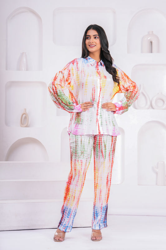 Rainbow Tie-Dye Santoon Co-ord Set – Relaxed Fit with Long Cuff Sleeves