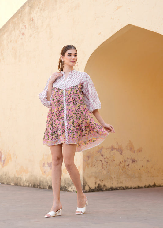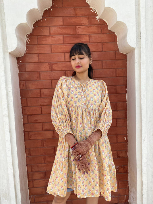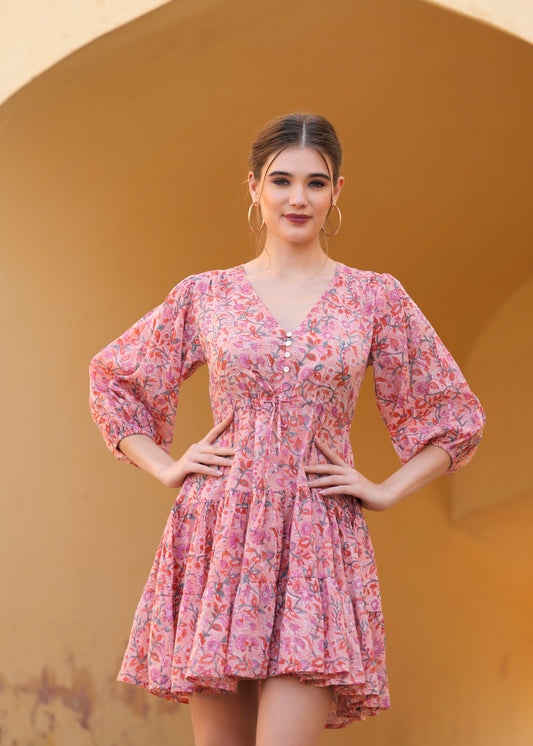 Beautiful Hand Block printed Cotton Floral Mini Dress