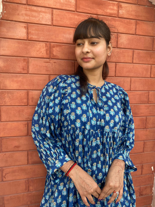 Beautiful Hand Block printed Cotton Blue Mini Dress