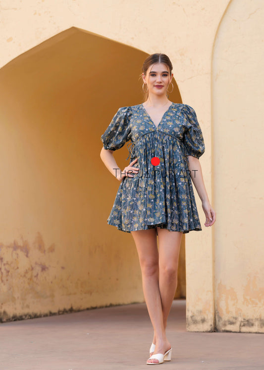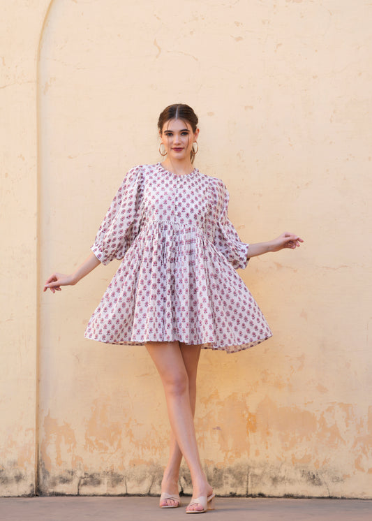 Beautiful Hand Block Printed Floral Vani Mini Dress