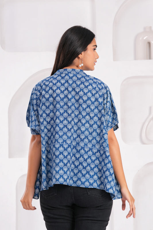 Hand Block Printed Cotton Co-ord Set Oversized Shirt & Wide-Leg Pants