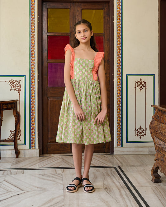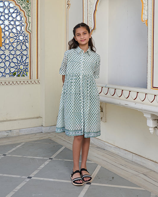 Elegant Cotton Block Print Dress for Girls – Stylish & Comfortable