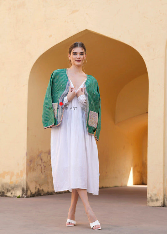 Handmade Vintage Jacket made from Unique Vintage Kantha Quilt Fabric - Perfect for the Fall Season. Each piece is one of a kind.