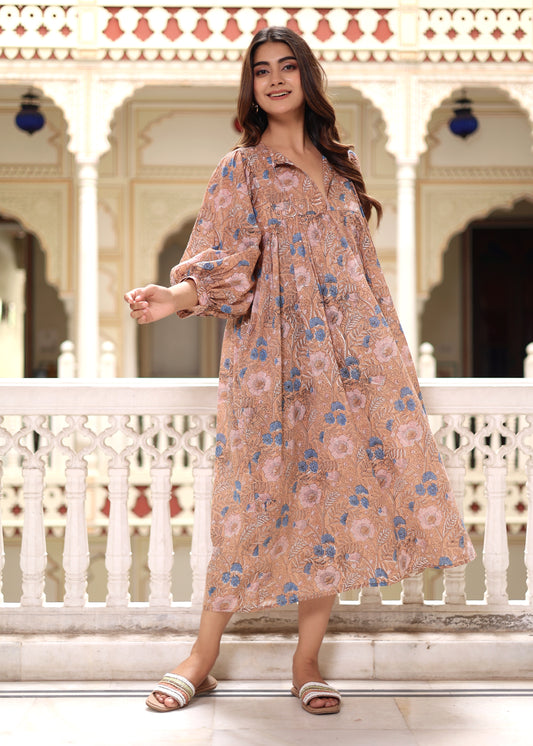 Beautiful Hand Block printed Cotton Floral Mini Dress