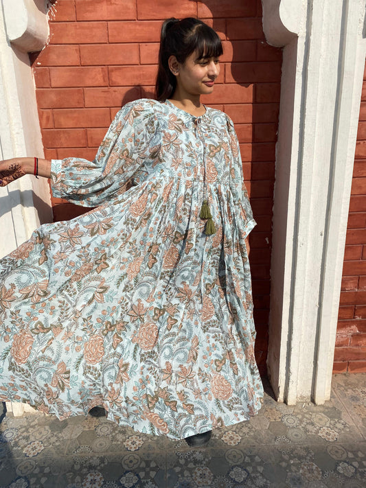 Hand block printed Machine Quilted Abhira Maxi Dress