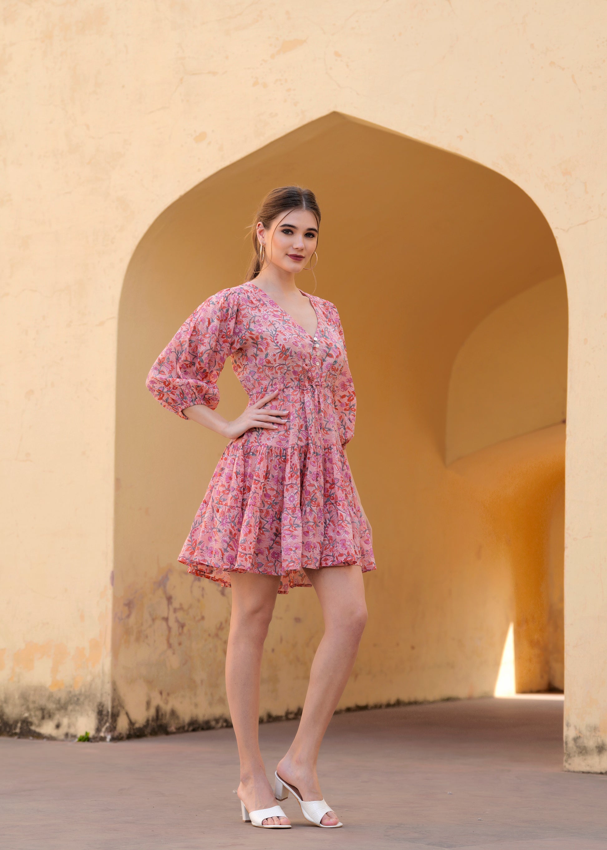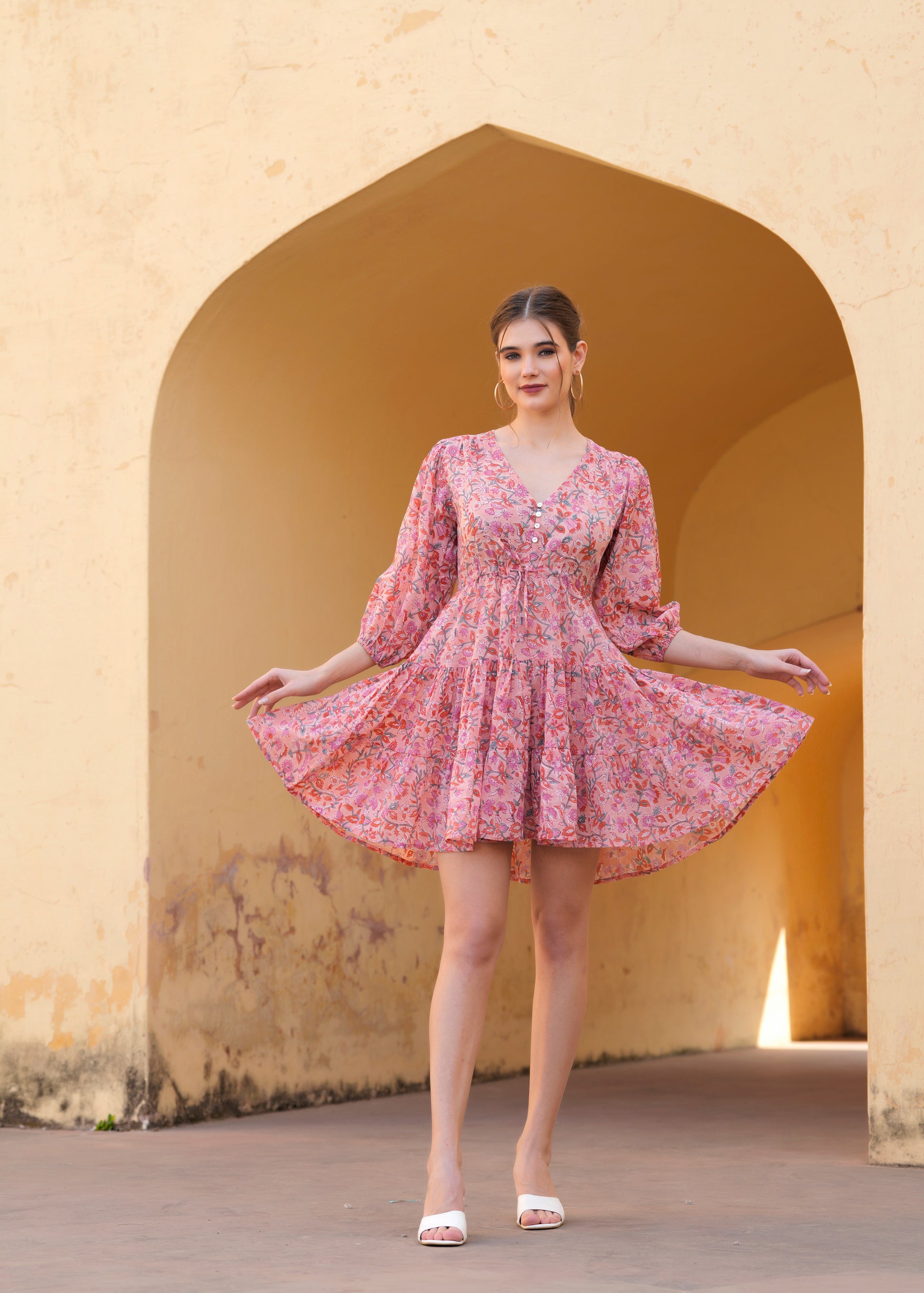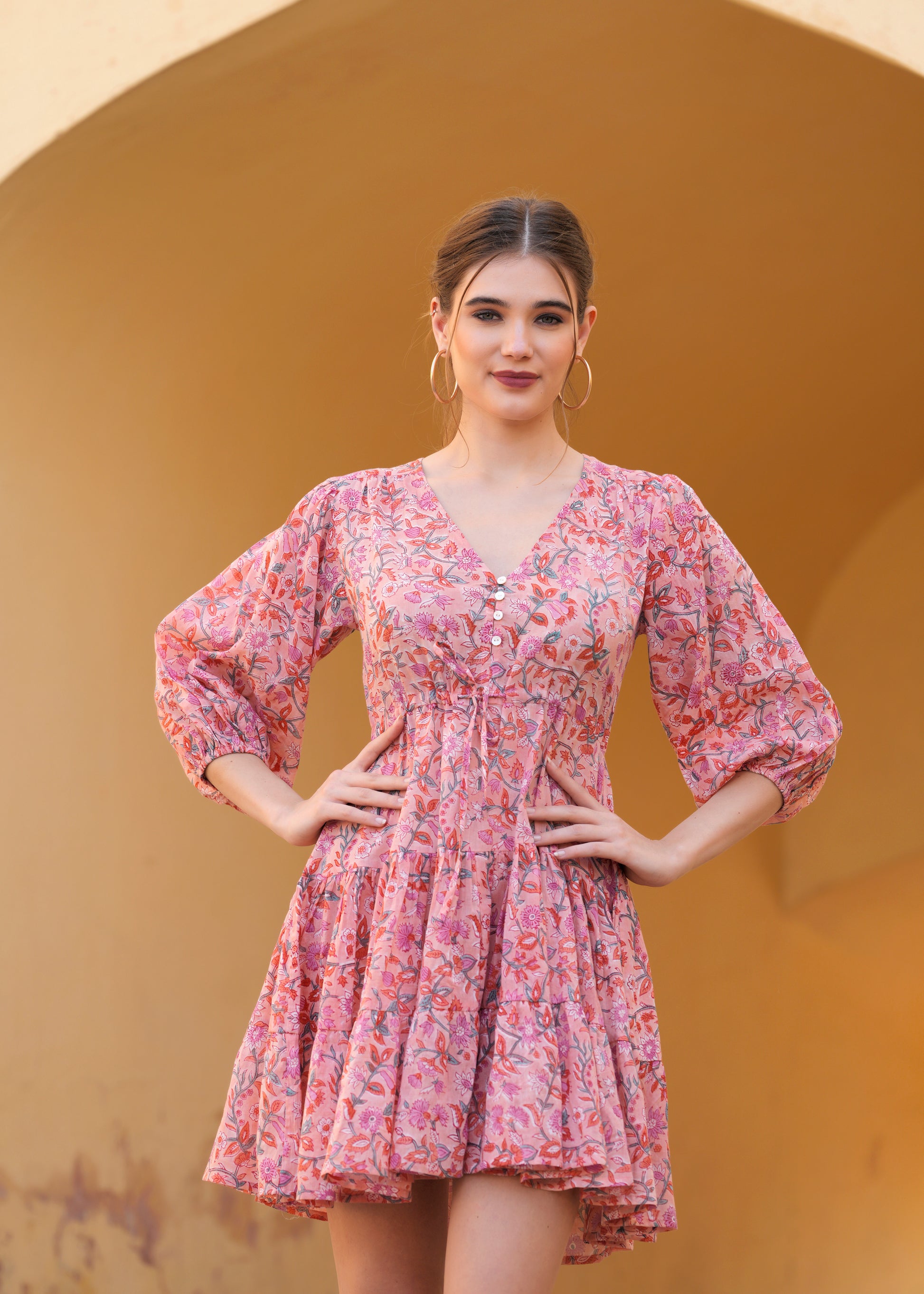 Beautifully block printed and handmade cotton Layla mini dress. It can be worn as daily wear outfit as well as on an outing.