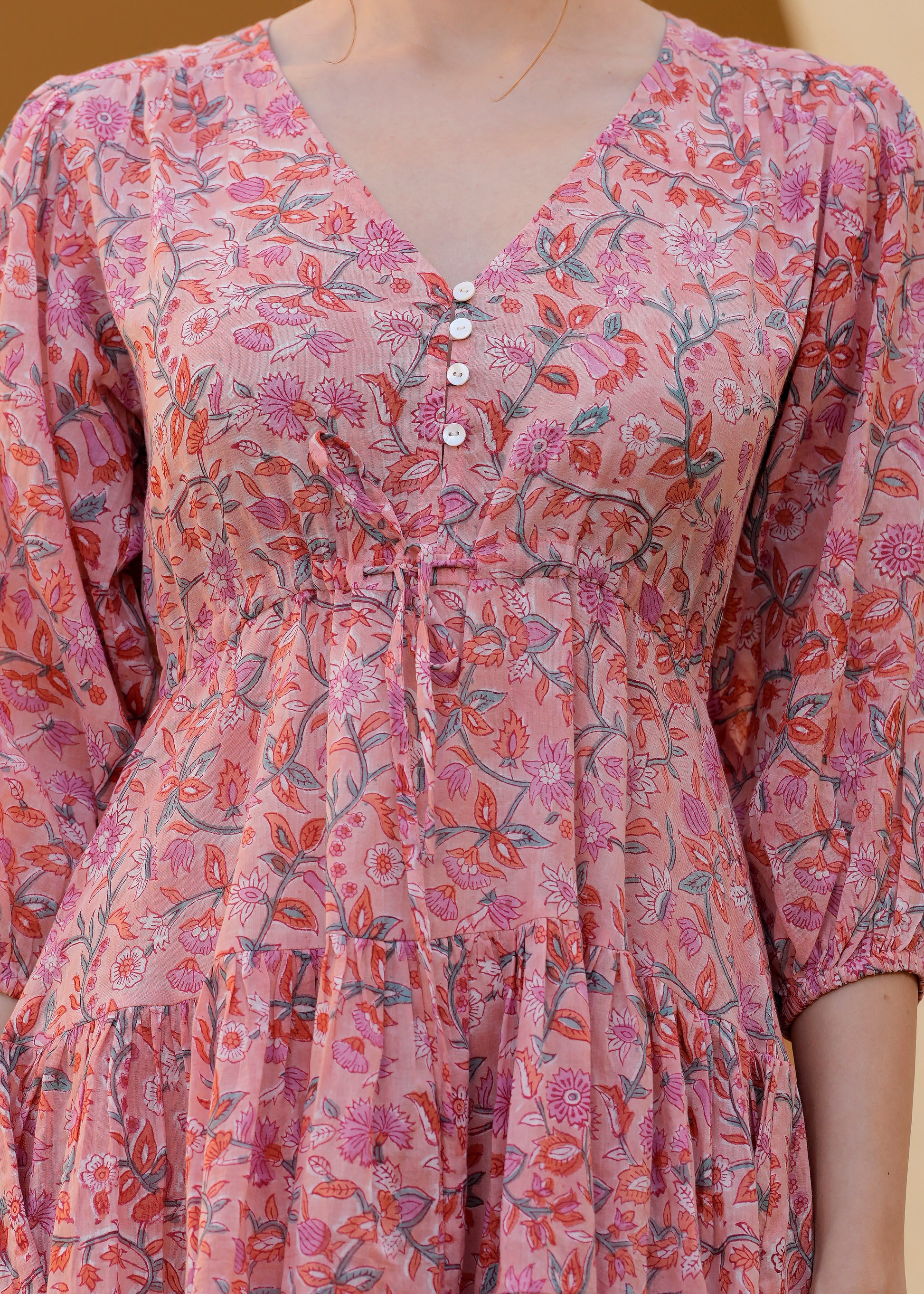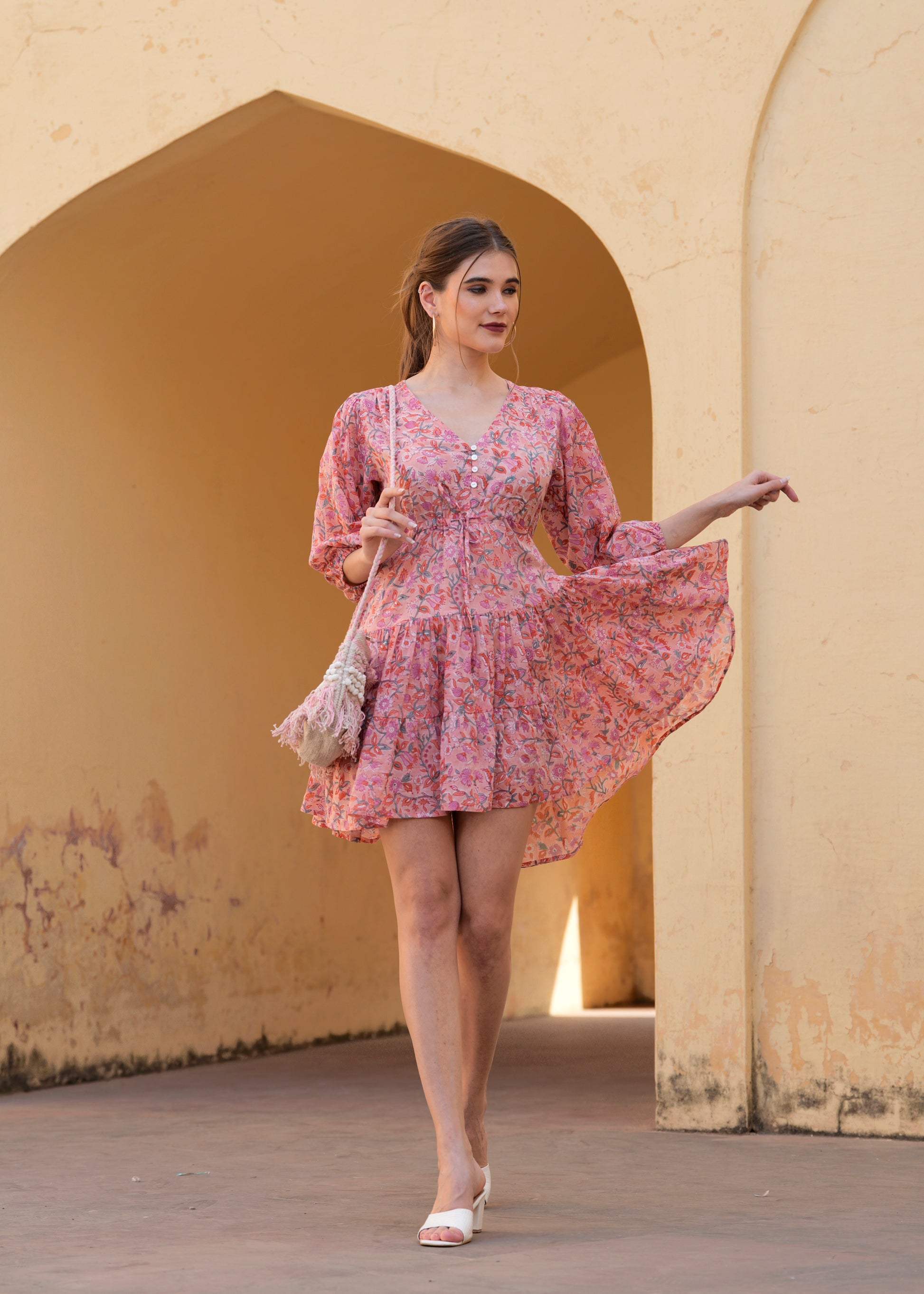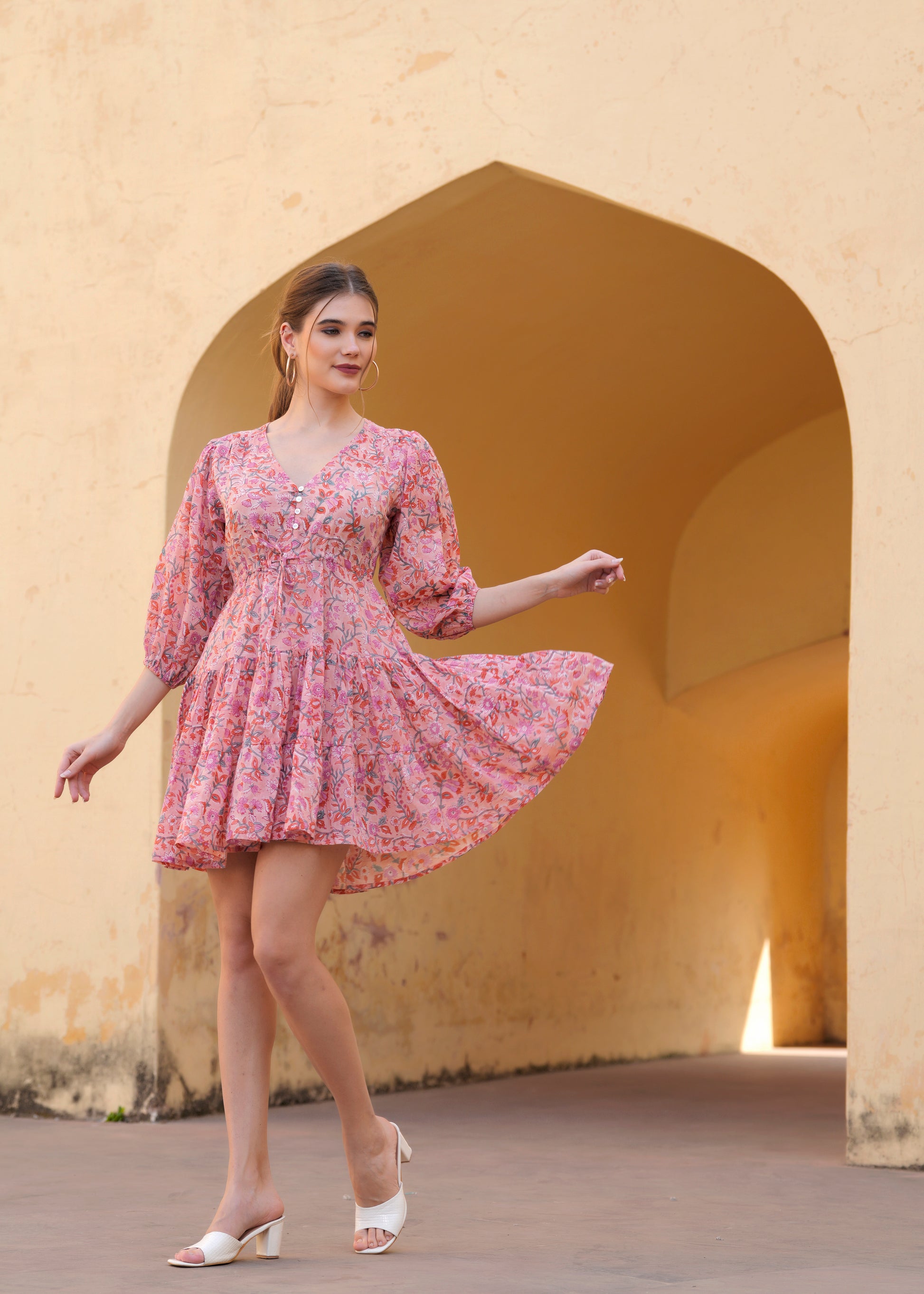 Beautifully block printed and handmade cotton Layla mini dress. It can be worn as daily wear outfit as well as on an outing.