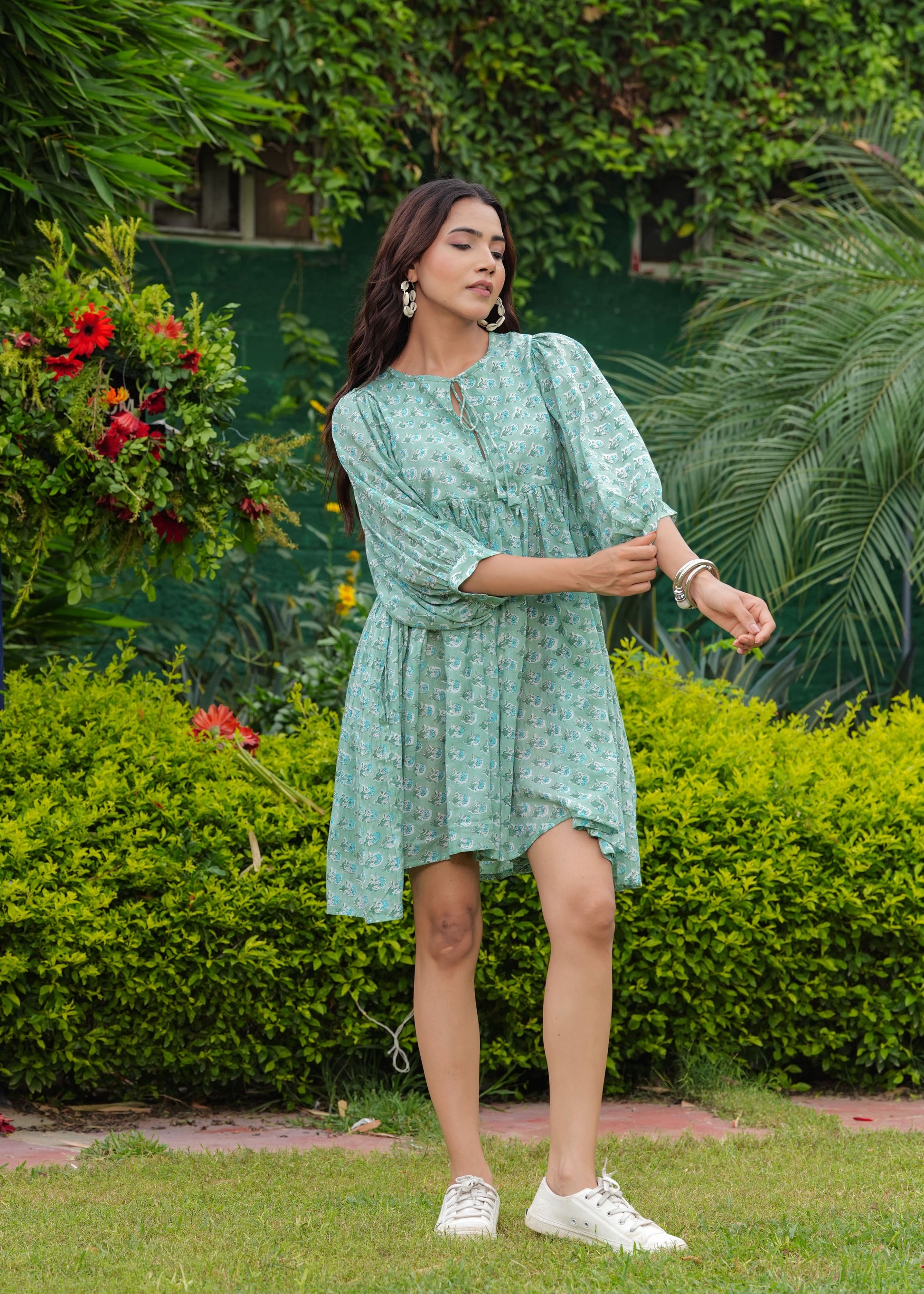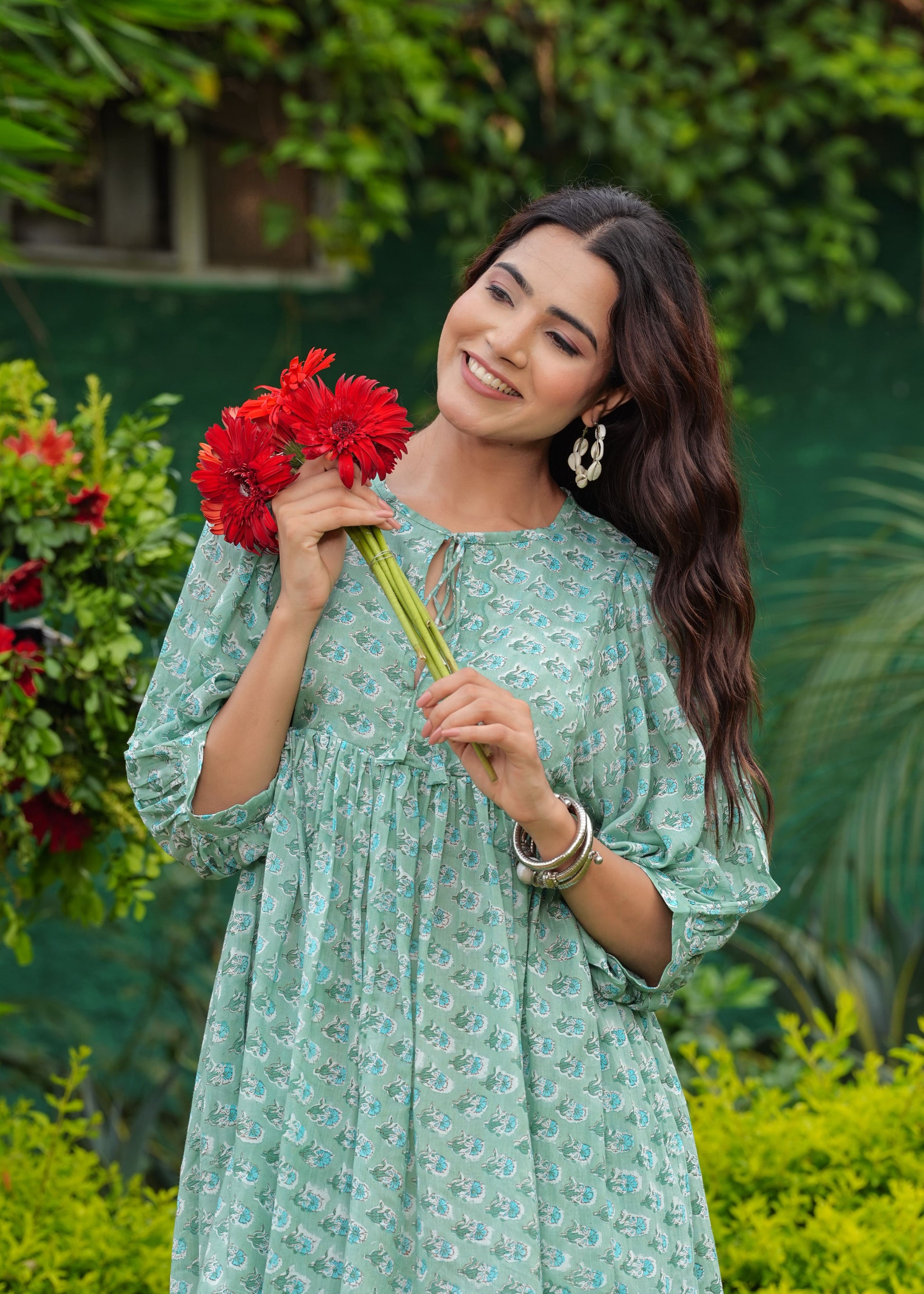 Beautifully block printed and handmade cotton Mehr Mini~Green Apple. It can be worn as daily wear outfit as well as on an outing.