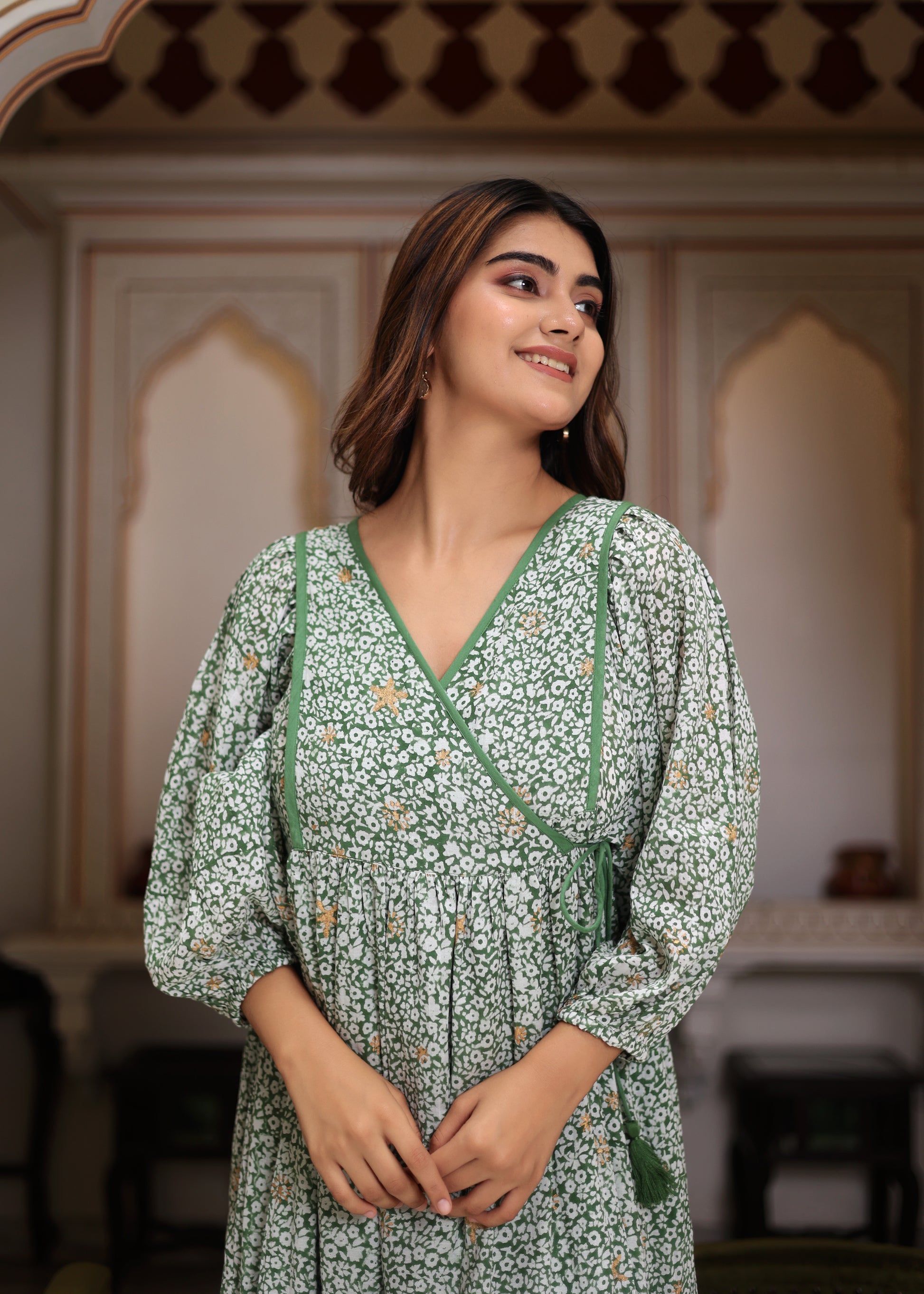 The Ruth Wrap Around Midi is a fashionable yet timeless addition to any wardrobe. Made of 100% cotton, this midi is breathable and light, perfect for breezy spring days. Featuring hand block print for a unique, eye-catching look, you'll be sure to make a statement in this stylish wrap around midi.