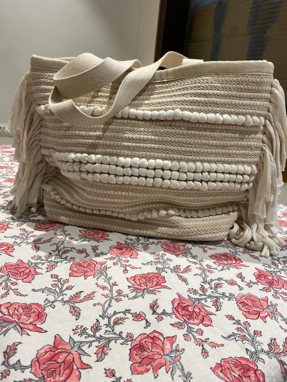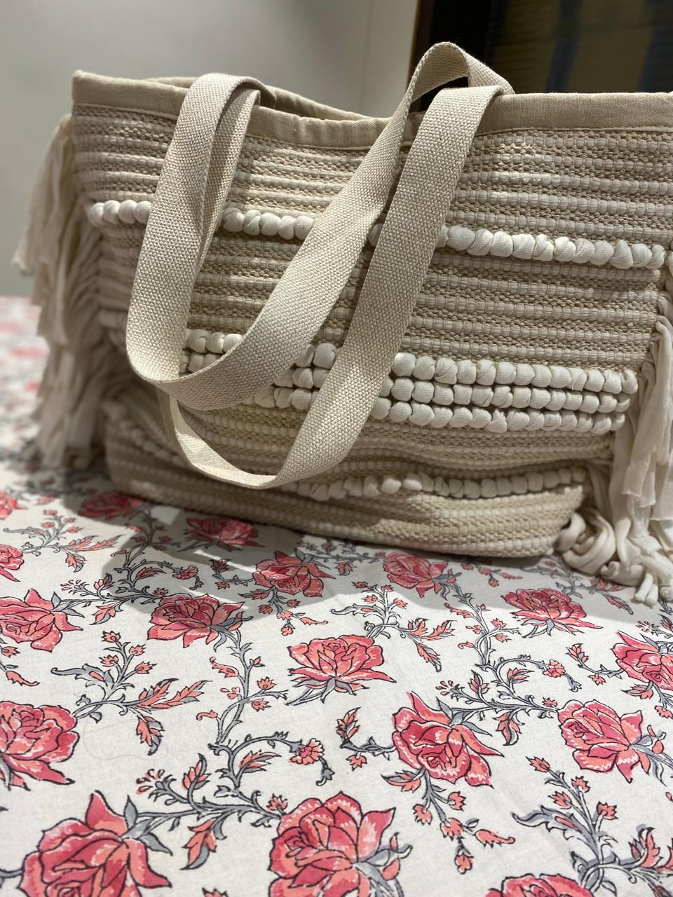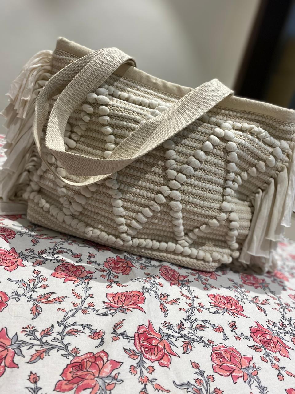 Textured Boho Fringe Tote Bag – Handcrafted Elegance